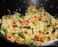 Do warzyw dosypujemy ugotowany w osolonej wodzie ryż i dokładnie mieszamy.