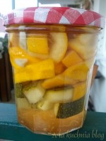 Cukinia, kabaczek dynia – nie ma znaczenia – uwielbiam je wszystkie zapiekane, nadziewane, w placuszkach, w ciastach, na słodko.... ale w tej postaci jadłam po raz pierwszy u mojej Cioci. Jest Ona mistrzynią we wszelkich przetworach, dzięki Niej mogę podzielić się z Wami tym wspaniałym przepisem. Cukina w zalewie „po chińsku”- super chrupiąca, lekko pikantna – idealna! (W oryginale są ogórki, ale cukinia moim zdaniem je przebija – próbowałam obu warzyw w tej zalewie)